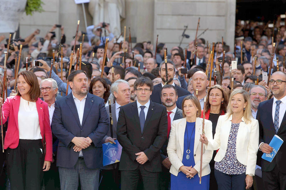 - 20 de setembro de 2017: o Juizado de Instrução nº 13 de Barcelona ordenou, na parte da manhã, a detenção de 14 representantes e funcionários técnicos da Generalitat de Catalunya. Diversas denúncias foram feitas contra as irregularidades nas detenções: realizadas sem suficientes garantias legais e, em alguns casos, de maneira brusca e precipitada. No mesmo dia, um numeroso grupo de agentes da Polícia Nacional marcou presença diante da sede de um dos partidos independentistas, CUP, às 13h30, e tinha a intenção de entrar na sede. Os representantes da CUP solicitaram aos agentes policiais a ordem judicial, mas não havia. Os policiais permaneceram no local até 20h15. Ainda em 20 de setembro, a Guarda Civil confiscou 10 milhões de cédulas de voto em um armazém, e deteve duas pessoas. As operações policiais provocaram uma grande reação popular, com manifestações em diversas partes da Catalunha, especialmente em Barcelona, onde houve uma massiva concentração popular diante da sede do departamento de Economia e Fazenda. A Promotoria da Audiência Nacional (em Madri) interpôs uma denúncia criminal contra diversos manifestantes e os presidentes da Òmnium Cultural (Jordi Cuixart) e da Assemblea Nacional Catalana (Jordi Sánchez) por um suposto delito de sedição. Semanas depois, os dois líderes foram enviados para a prisão, de maneira incondicional.